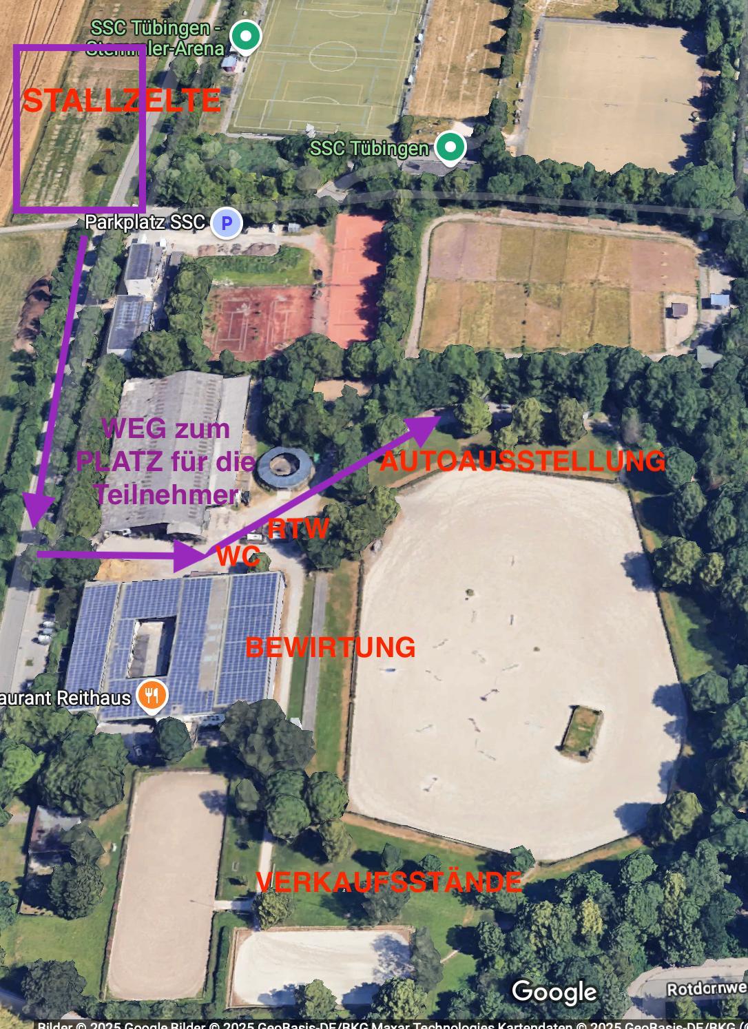 Bitte beachten Sie, dass der Wasseranschluss am Stallzelt erst ab 16.00 Uhr (Donnerstag) eingerichtet sein wird.